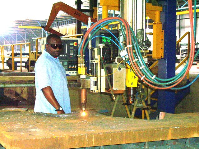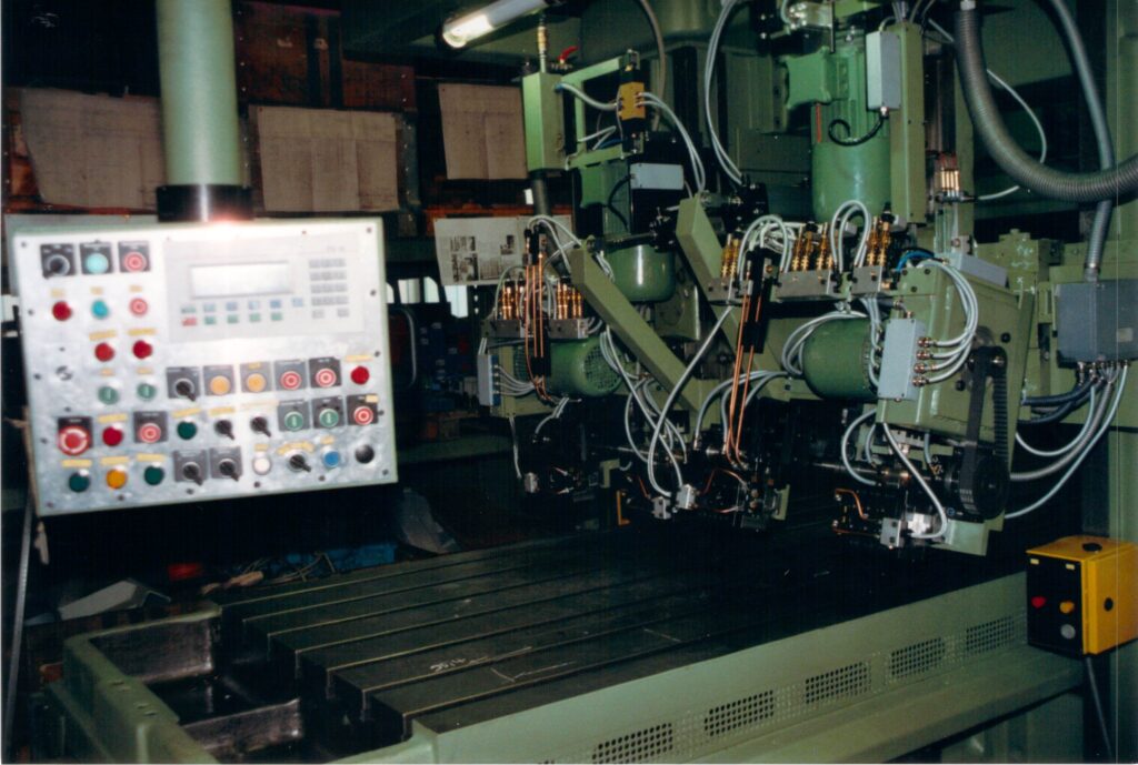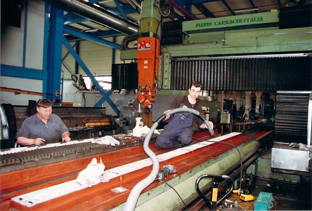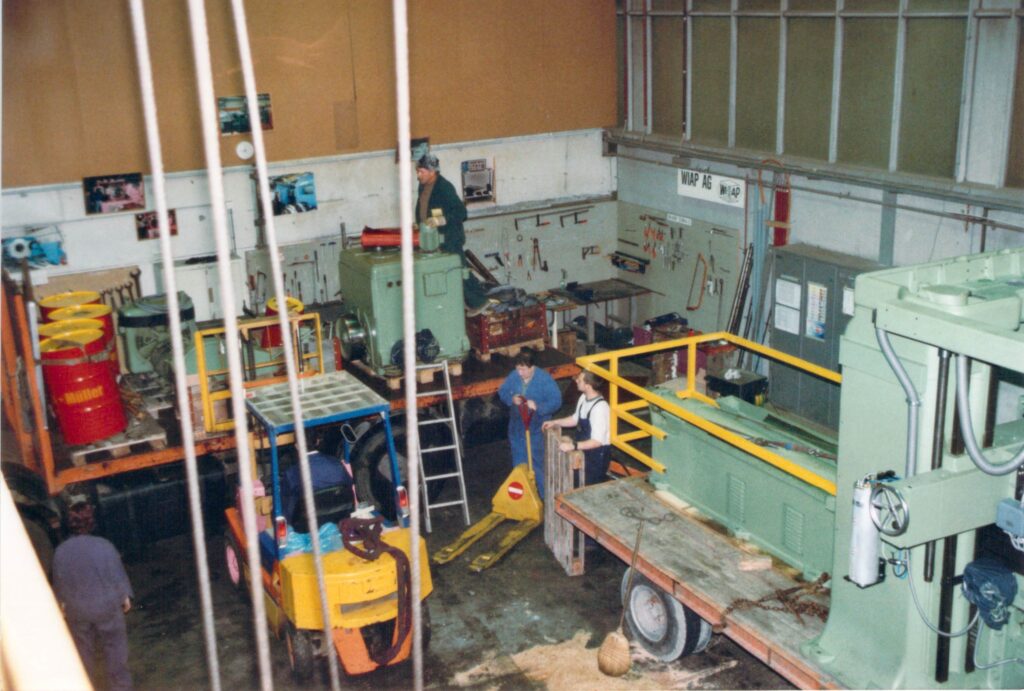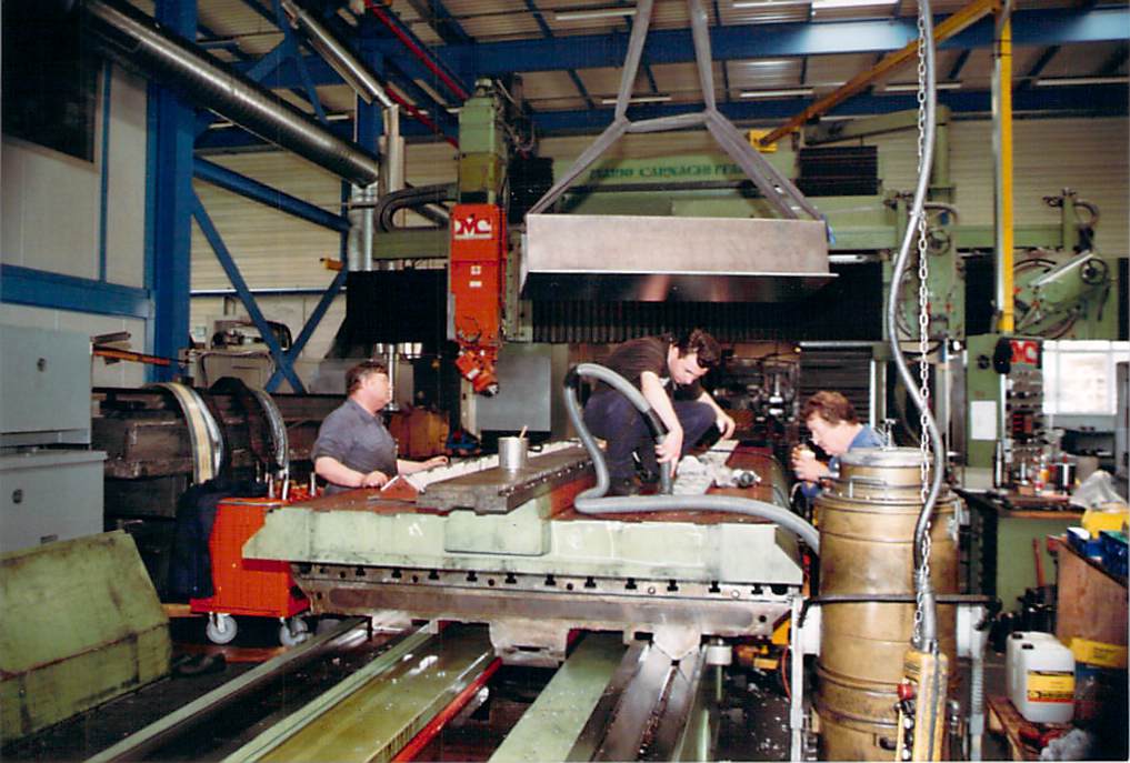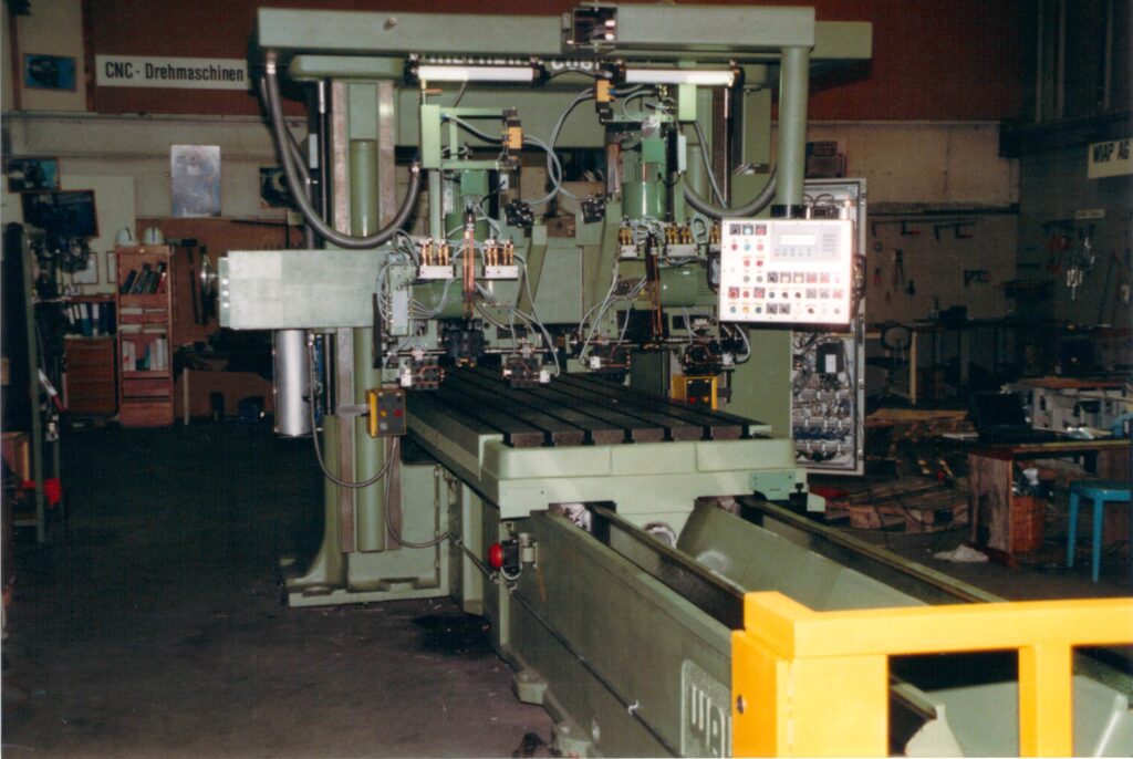 Die Brennschneidanlage Wiap FPL Maschine wurde 1993 gebaut, hergestellt aus einem Flächenportal der Firma WMW, das bei Sulzer gekauft wurde. Di Maschine wurde erneut umgebaut auf eine neue CNC Steuerung Sinumerik 802 von Caroline und H.P. Widmer in Angola. 7 Maschinen, alles dieselben CNC Steuerungen, das ist ideale für den Unterhalt.
