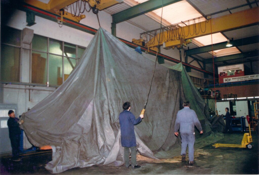 Bild 10 Z13: Diese schweren Planen mit dem Kran heben, ging einfacher als von Hand.