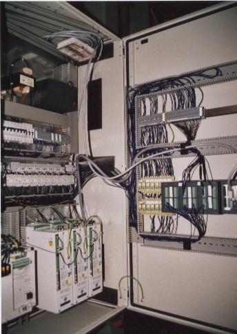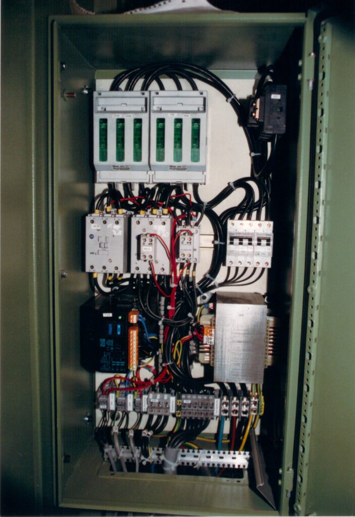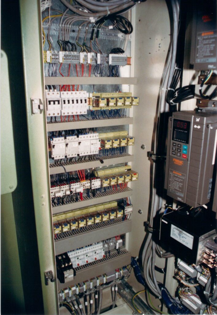 Bild 10 X: Der Starkstromteil wurde in einem kleinen Nebenschrank untergebracht und kompakt an der neu aufgebauten Maschine angebaut. Nicht, wie herkömmlich, extern von der Maschine. Somit konnte alles ohne Demontage transportiert werden. WU4018