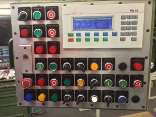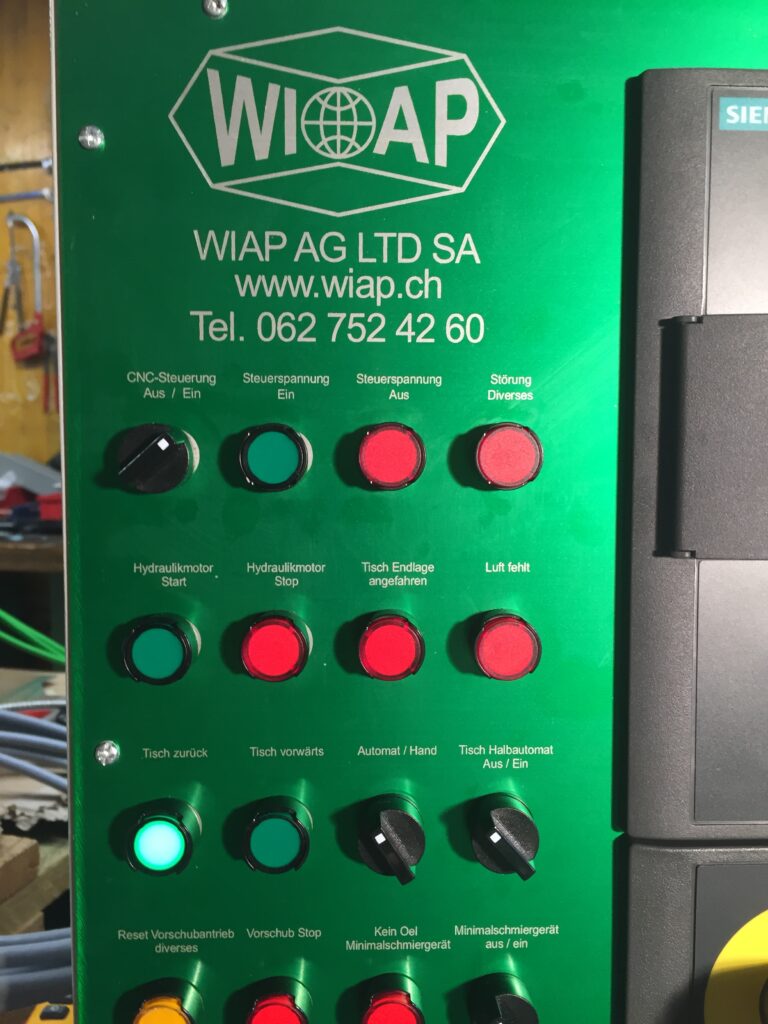 Bild 11 C: Der Operateur war mit der Schalteranordnung der alten Lösung zufrieden und wollte keine Neuheiten. Darum haben wir viel der alten Knöpfe übernommen, obwohl es bei der neuen Steuerung viel über die CNC hätte gehen können. Doch im Hinblick der Hand-, Halbautomat und CNC Lösung haben wir es nach Operateurwunsch gewählt.