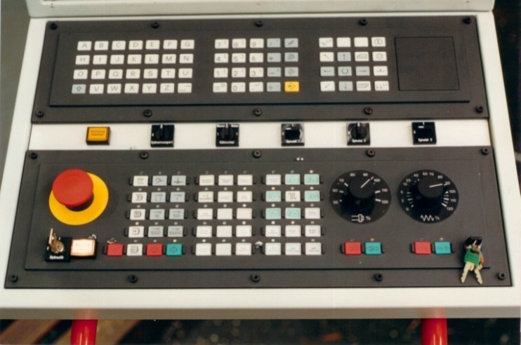 Bild 9 B: Die CNC Sinumerik 802. Ausgelegt mit Schutzlevels für diverse Leute, dass ua. nicht der Lehrling gleich mit den Achsen fahren kann. Oder, dass der Operateur programmieren kann. Die Maschine hat 7 Schutzstufen.