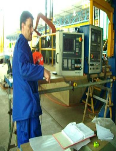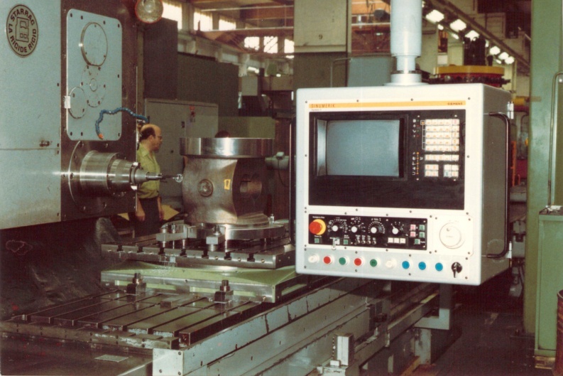 Bild 9 C: Der Operateur, der als Erster lernte, mit der neuen CNC zu arbeiten. Stolz, wie er ist. Er kann es auch sein. In wenige Minuten macht er ein Flansch, wenn er ein Skizze hat.