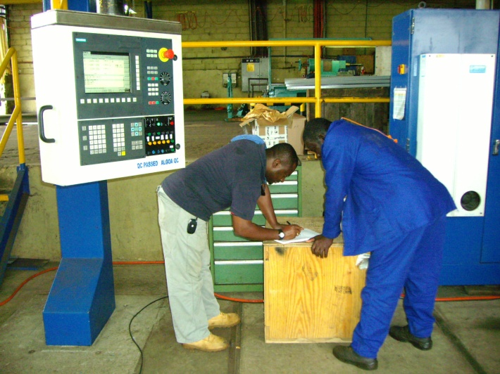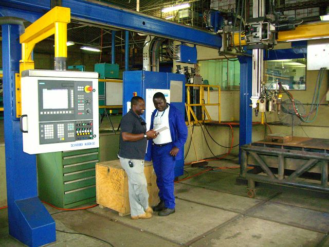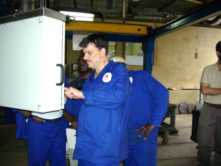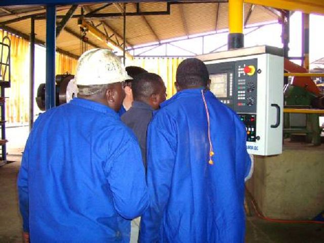 Bild 8 B: H. P. Widmer schult in Angola die Operateure an der neuen CNC Steuerung.