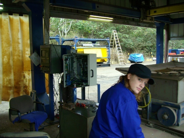 Bild 8 L: Wieder H.P. Widmer ein paar Jahre älter, wie die Maschinen. Die alten Sinumerik sind am Ende. Die Steuerungen werden vom Schwefel der Luft, sowie der hohen Luftfeuchtigkeit verfressen, welche oft bis 110% ist. Aber die Mechanik macht noch mit!